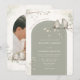 Célébrez la foi, l'amour et l'unité avec le faire-part de mariage chrétien « Deux valent mieux qu'un », magnifiquement conçu dans des tons de vert sauge doux et des nuances neutres élégantes. La face avant du faire-part présente un design à arc gracieux, encadrant vos informations de mariage dans une mise en page moderne et intemporelle. Au dos, un cadre en arc assorti contient votre photo préférée, créant un beau souvenir pour vos invités.