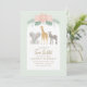 Invitations amis et famille pour fêter l'anniversaire de votre petit ! Cette invitation au safari présente de la typographie dorée et d'adorables animaux de safari sur un arrière - plan vert menthe.