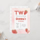Invitation d'anniversaire sur le thème des fraises. Lettres Deux lumineuses avec des fraises. Détail à pois sucré au verso. Rouge et rose. Parfait pour le deuxième anniversaire d'un bébé ou d'un tout-petit. Texte moderne et amusant facile à modifier. S'intègre dans un thème de fête tutti fruity / twotii fruity ou berry sweet. Trouvez des accessoires assortis dans la boutique Gemma Harlow Creations ou transférez le design sur vos produits préférés.