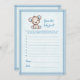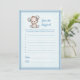 Adorable ours brun et bleu pour le baby shower d'un garçon. Devinez ce jeu de baby shower de nourriture pour bébé. Couverture bleue avec bordure bleue cousue pour arrière - plan. Des modèles ont été fournis sur le dos.