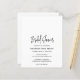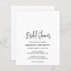 Une invitation à la douche nuptiale à budget noir et blanc moderne, avec un design simple, avec le titre de l'événement dans une élégante typographie de script et les détails de votre événement dans une police sans serif minimaliste. Cette invitation chic fonctionne bien avec n'importe quel style de douche nuptiale.