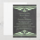 Elégante et chic Deco Chalkboard Bridal Shower Invitation avec une texture de tableau à damier tendance look arrière - plan et une paire de bordures tourbillonnantes d'art déco vert clair. Cette belle invitation wedding shower est parfaite pour une douche à thème rétro des années 20. Facile à customiser, il suffit d'ajouter les détails de votre mariage. Cliquez sur "Customiser" pour trouver d'autres options de personnalisation.