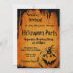 Invitation d'Halloween pour une fête d'Halloween avec citrouille sur un arrière - plan orange grunge. Organisez une fête d'Halloween à ne pas oublier !