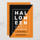 Invitation simple moderne minimaliste géométrique Halloween partie. Blanc orange et noir.