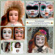 Une belle invitation, un peu plus formelle pour la fête ou la veillée familiale de la fête des morts. Le maquillage traditionnel "La Catrina" est numériquement modelé sur le visage attachant d'une poupée victorienne antique de ma collection personnelle. Un damas doré sur soie d'un bleu-vert apaisant fournit un arrière - plan élégant. Scellez vos invitations avec les autocollants La Catrina correspondants, également disponibles chez Cheeky_Poppets.