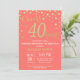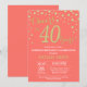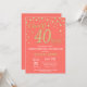 Invitation surprise 40e anniversaire avec Arrière - plan Diamant Coral et Gold Parties scintillant. Gold Confetti. Anniversaire adulte. Hommes ou femmes, anniversaire. Pour plus de personnalisation, cliquez sur le bouton "Customiser" et utilisez notre outil de conception pour modifier ce modèle.