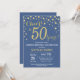 Invitation surprise 50e anniversaire avec Arrière - plan Diamant Parties scintillant Bleu et Or. Gold Confetti. Anniversaire adulte. Hommes ou femmes, anniversaire. Pour plus de personnalisation, cliquez sur le bouton "Customiser" et utilisez notre outil de conception pour modifier ce modèle.