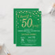 Invitation surprise 50e anniversaire avec Arrière - plan Diamant Parties scintillant vert et or. Gold Confetti. Anniversaire adulte. Hommes ou femmes, anniversaire. Pour plus de personnalisation, cliquez sur le bouton "Customiser" et utilisez notre outil de conception pour modifier ce modèle.