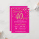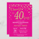 Invitation pour 40e anniversaire avec fond diamant rose vif et or pailleté. Confettis dorés. Anniversaire adulte. Anniversaire homme ou femme. Pour une personnalisation plus poussée, veuillez cliquer sur le bouton "Personnaliser" et utiliser notre outil de conception pour modifier ce modèle.