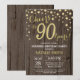 Invitation Surprise 90e Anniversaire avec Fond Diamant Pailleté Or et Bois Rustique. Campagne Vintage Rétro. Confettis Or. Anniversaire Adulte. Anniversaire Homme ou Femme. Pour une personnalisation supplémentaire, veuillez cliquer sur le bouton "Personnaliser" et utiliser notre outil de conception pour modifier ce modèle.