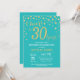 Invitation à l'anniversaire du 30e anniversaire avec l'Arrière - plan Diamant de la Parties scintillant Turquoise et d'or. Gold Confetti. Anniversaire adulte. Hommes ou femmes, anniversaire.