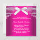Rose vif diamant nœud blanc rose vif Quinceanera. Cette élégante invitation à une fête d'anniversaire rose vif est facilement personnalisable pour votre fête ou événement en choisissant simplement le bouton "Personnalisez-le !" pour commencer à ajouter les détails de votre événement, le style de police, la taille et la couleur de la police, ainsi que le libellé. Veuillez noter que tous les décorations de gâteaux, cartes et modèles d'invitation que vous trouverez sur Zazzle sont des graphiques imprimés sans véritables bijoux, nœuds, reliefs, gaufrures ou pièces ou éléments ajoutés.