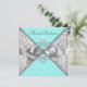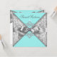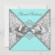 Beau diamants blancs et bleu turquoise avec gris argenté damassé bleu turquoise invitation fête d'anniversaire. Ajoutez vos détails à l'avant et à l'arrière de cette élégante invitation de fête d'anniversaire en bleu turquoise en ajoutant vos détails d'événement, le style de police, la taille et la couleur de police et le libellé.