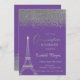 Invitation Diamants d'argent, Tour Eiffel Violet Quinceanera