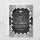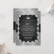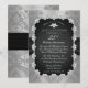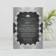 Invitation d'anniversaire de mariage de 25 ans brillamment sophistiquée et élégante avec un fond superposé à motif de dentelle noire et argentée et un ruban de satin imprimé noir avec des diamants en forme de cœur, de larme et ronds imprimés disposés dans un cadre rectangulaire arrondi. Le ruban de satin noir et le fond de dentelle noire et argentée se poursuivent au verso pour un look soigné et sophistiqué. Création originale de Holiday Hearts Designs (tous droits réservés). Veuillez noter que tous les embellissements sont imprimés.
