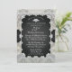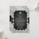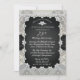 Invitation de 75e anniversaire de mariage brillamment sophistiquée et élégante avec un overlay à l'aspect de dentelle sur un fond à l'aspect or blanc et un ruban de satin imprimé noir avec des diamants en forme de cœur, de larme et ronds disposés dans un cadre rectangulaire arrondi. Le ruban de satin noir et le fond or blanc et dentelle sont continués au verso pour un look soigné et sophistiqué. Création originale de Holiday Hearts Designs (tous droits réservés). Veuillez noter que tous les embellissements sont imprimés.