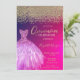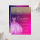 Invitation Diamants d'or, élégante robe chic Quinceañera