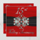 Brillamment sophistiqué et élégant Quinzième Anniversaire de mariage faux satin rouge aspect fond et ruban de satin noir avec diamants et rubis dans un style à claire-voie qui est poursuivi au verso. Le verso présente un faux carton argenté et nacré recouvrant monté dans les coins avec les fermoirs rubis et diamant. Création originale de Holiday Hearts Designs (tous droits réservés).