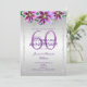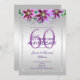 Magnifique conception tendance, moderne, romantique et sophistiquée pour les événements de la fête d'anniversaire de mariage de 60 ans d'un couple. Soixantième anniversaire élégant et fabuleusement glamour. Avec une belle image imprimée fantaisiste d'un cadre de bordure décoratif en diamants de bijou en strass argenté, dans des couleurs argentées époustouflantes, le tout imprimé sur un fond dégradé argenté glamour avec un joli affichage de fleurs violettes sur le dessus. Tout le texte, la taille et les couleurs des polices sont entièrement personnalisables. Ce sont de belles invitations conçues avec des couleurs argentées et violettes mignonnes et élégantes. Parfait pour les événements de printemps/été, mais peut être utilisé pour n'importe quelle saison. Une conception moderne et élégante avec un look romantique sophistiqué. Si vous souhaitez de l'aide pour personnaliser votre produit, veuillez me contacter via ma boutique et je serai