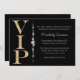 Cette invitation de fête personnalisée présente un thème glamour et élégant sur un fond noir. Le titre VIP est imprimé dans un design pailleté or sur la gauche. Une bande de diamants sépare la zone de texte. C'est parfait pour un anniversaire, une douche de mariée ou une autre célébration fabuleuse.