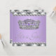 Jolie tiare argentée et violette avec des cordes de diamants solitaires. Cette élégante invitation au baby shower violet lavande est facilement customisée pour votre événement en ajoutant les détails de votre événement, le style de police, la taille et la couleur de police et le libellé.