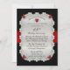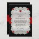 Invitation d'anniversaire de mariage de 15 ans brillamment sophistiquée et élégante avec fond noir et ruban de satin imprimé faux rouge rubis avec des diamants et des cœurs imprimés rubis disposés dans un cadre rectangulaire arrondi. Le ruban de satin rouge faux et le fond noir sont continués au dos pour une apparence soignée et sophistiquée. Conception originale de Holiday Hearts Designs (tous droits réservés). Veuillez noter que tous les embellissements sont imprimés.