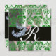 INVITATION DIAMOND FEATHERS GREEN SILVER SILK DAMASK MONOGRAM