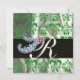 INVITATION DIAMOND FEATHERS VERT SILK BLANC DOMMASK MONOGRAM
