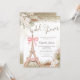 Elegant gold diamonds, flowers, and the Eiffel Tower with bow on a white background. Personalize the text template with your event details. This invitation is available in both printed and instant download digital formats for your convenience.