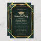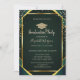Invitation Diamonds Gold Grad Cap Striped Green Graduation