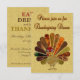 Invitation à la célébration du dîner de Thanksgiving, illustration avec une dinde drôle et colorée dans des tons bruns automnaux.