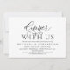 Calligraphie romantique moderne, écriture noire, carte d'invitation au dîner de répétition de mariage (Dîner avec nous). Elle est parfaite pour votre fête de célébration de répétition de mariage, avant votre plus beau jour. Ajoutez vos détails avec une écriture assortie.