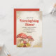 Rustic Friendsgiving dîner invitation avec champignons rouges et verts dans une belle scène automne/automne.