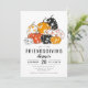 Ce design de vacances présente des citrouilles floraux modernes en orange, noir et blanc avec vos informations personnalisées Friendsgiving Dinner Invitation ci-dessous. #action de grâces #dîner de grâces #dîner #fête des amis #dîner #invitation #invitation #remerciement #invitation #remerciement #citrouille #orange #noir #ferme #rustique #dots #motif #moderne #orange #brun #floral #fleurs #botanique #fête #saisonnière #fête #fête #merci #merci #merci merci #merci merci