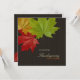 Dîner Thanksgiving moderne et élégant / modèle d'invitation à la fête avec un thème d'automne coloré avec de beaux feuilles d'érable rouge, orange et vert sur arrière - plan chocolat. Personnalisez-le avec votre propre texte sur les deux côtés ou customisez-le plus si vous souhaitez ajuster la disposition et le texte ou choisir une autre taille d'invitation. Enveloppes et timbres correspondants également disponibles :