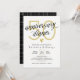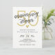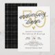 Invitation élégante de dîner d'anniversaire de mariage en noir et blanc avec des détails en or.