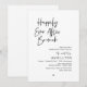 Marquez le début de votre pour toujours avec élégance en utilisant notre carte d'invitation de célébration "Brunch de Mariage" avec un thème contemporain noir et blanc pour le lendemain de votre mariage en fuite, "Heureux pour toujours". Parfaite pour les couples qui prolongent leur occasion joyeuse, cette invitation dégage de la sophistication avec une touche de ludicité, préparant le terrain pour un événement mémorable. Ornée d'un thème de design de police moderne intemporel, elle ajoute une touche de charme raffiné à vos festivités. Conçue par TeeshaDerrick, cette invitation promet de capturer magnifiquement votre histoire d'amour.