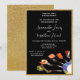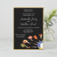 Ce modèle d'invitation présente un design moderne de nourriture sur fourchettes sur fond noir avec une bordure de paillettes dorées. Personnalisez avec les informations de votre soirée de fiançailles. Affiché dans une taille 5x7, des tailles plus grandes ou plus petites sont également disponibles.
