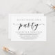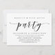 Carton d'invitation de fuite de noces sur le thème des écritures modernes (Fête de Pour Toujours Heureux). C'est parfait pour votre célébration décontractée de fuite de noces au bord du lac.