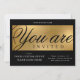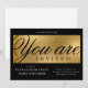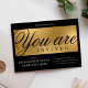 Créez des invitations professionnels pour votre événement avec cette invitation de fête d'entreprise moderne en noir et or. Vous pouvez modifier tout le texte, ajouter votre logo et les détails de l'événement pour créer des invitations élégantes pour votre fête de lancement, soirée de gala, dîner de collecte de fonds ou tout autre événement d'entreprise. La police de script tendance écrit "vous êtes invité" et l'arrière - plan de l'effet faux or ajoutent une touche extra luxe à ces invitations de société.