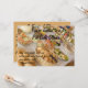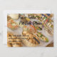 Une table remplie de grandes quantités de pain, de salade, de viande et de desserts est le arrière - plan de cette invitation à la chance.