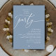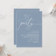Marquez le début de votre pour toujours avec élégance en utilisant notre carte d'invitation de célébration de mariage en fuite sur le thème romantique contemporain bleu poussiéreux, "Fête pour toujours heureux". Parfaite pour les couples qui prolongent leur occasion joyeuse, cette invitation dégage de la sophistication avec une touche de ludicité, préparant le terrain pour un événement mémorable. Orné d'un thème de design de script moderne intemporel, il ajoute une touche de charme raffiné à vos festivités. Conçue par TeeshaDerrick, cette invitation promet de capturer magnifiquement votre histoire d'amour.