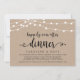 Belles lumières de chaîne de ferme rustiques modernes, police de script noir sur fond de papier kraft, annonce de mariage en fuite, carte d'invitation (dîner heureux pour toujours). C'est parfait pour votre réception de mariage et votre fête de célébration après le mariage. Ajoutez vos détails dans la police / lettrage correspondant.