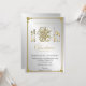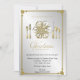 Cette belle invitation de dîner est parfaite pour votre événement de Noël. L'arrière - plan est un gradient argenté doux avec un cadre élégant d'or. Centré vers le dessus il y a un beau flocon de neige qui ressemble presque au verre avec des bords d'or. Vers la gauche sont deux fourchettes d'or et vers la droite est le couteau et les cuillères s'assortir. Votre information de partie va au fond.