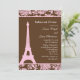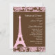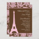 Un beau motif damassé fleuri accentue la Tour Eiffel sur cette invitation aux couleurs de bonbons. Il est montré sur le papier de base; cependant, je recommande le poids et la texture du papier de lin. Cette invitation fait partie de la gamme complète de mariages Paris et Chocolat.