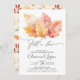 Cette invitation à la répétition présente de belles feuilles d'automne, ce qui en fait un endroit parfait pour une fête sur le thème de l'automne. L'invitation est simple et élégante, avec un arrière - plan blanc et un texte noir. Le tas de feuilles d'automne ajoute une touche de fantaisie et de plaisir, et le design général est parfait pour célébrer le prochain mariage du couple.