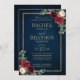 Invitation Dîner de répétition bleu marine or floral burgundy