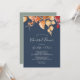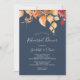 Cet automne laisse bleu marine et bordeaux l'invitation à dîner de répétition est parfait pour une répétition mariage d'octobre. Le design rustique moderne présente de superbes feuilles d'automne aquarelle peintes à la main dans des tons colorés de jaune, d'orange brûlé et de rouge bordeaux qui s'affichent sur un arrière - plan bleu marine.