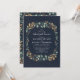 Marine bleu, vert et or vintage verdure wreath répétition dîner invitations