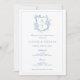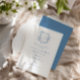 Monogramme de crête formelle et élégante vibrante bleu répétition invitation dîner.